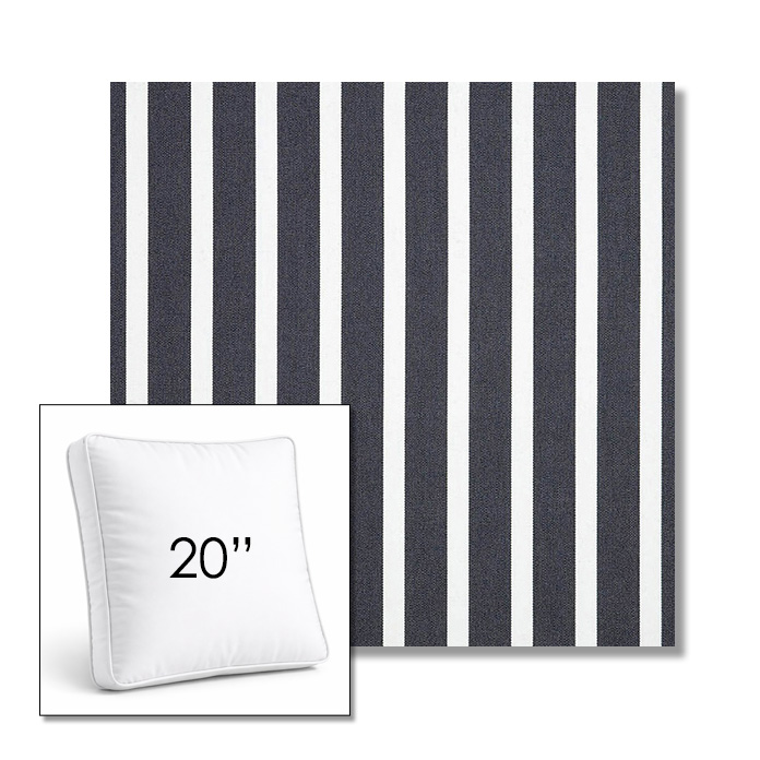 Shore Navy | 20" Square Boxed Sunbrella® Outdoor Pillow (3" Thick)