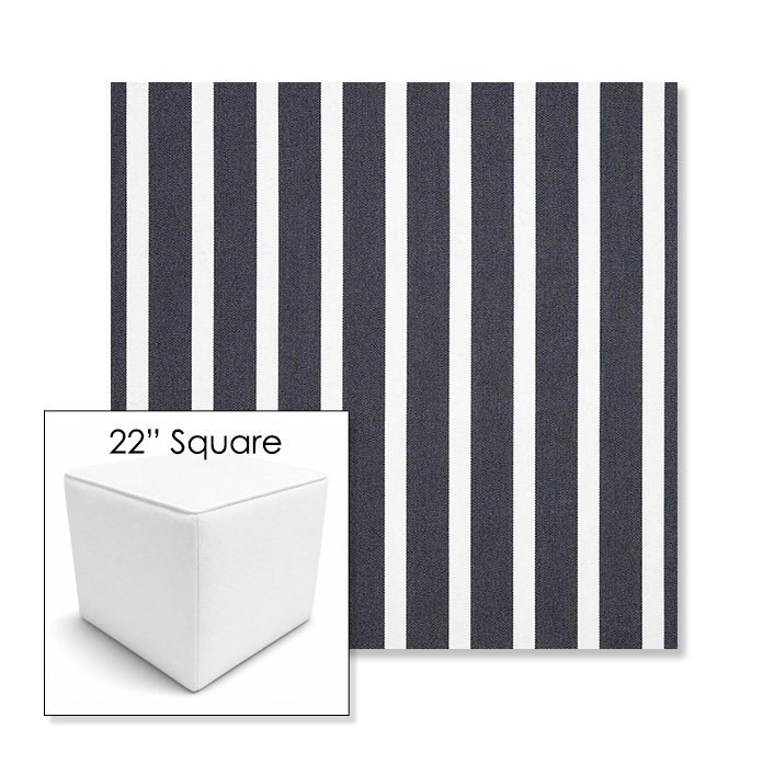 Shore Navy | 22" Square Outdoor Pouf or Ottoman | Sunbrella Fabrics