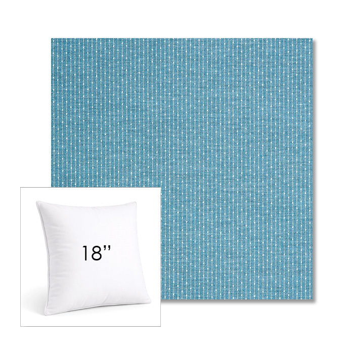 Custom 18" square outdoor pillows available in over 700 Sunbrella® fabrics. Choose piping or knife-edge finish with optional covered button detail. Each pillow includes a zipper opening and premium outdoor insert for comfort, durability, and long-lasting outdoor performance.