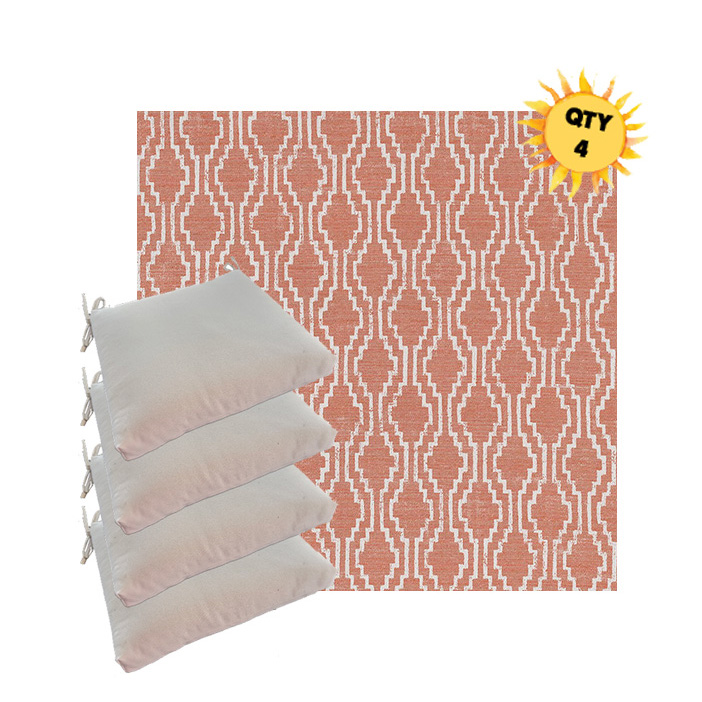 Each cushion is available in 4 universal sizes so you can choose the best fit for your existing outdoor dining furniture. A generous set of fabric ties keeps the cushion securely in place, even when people shift and move during meals. The interior features a combination of outdoor-rated foam and plush polyester fiber, creating a seat that feels soft yet supportive and holds its shape over time.