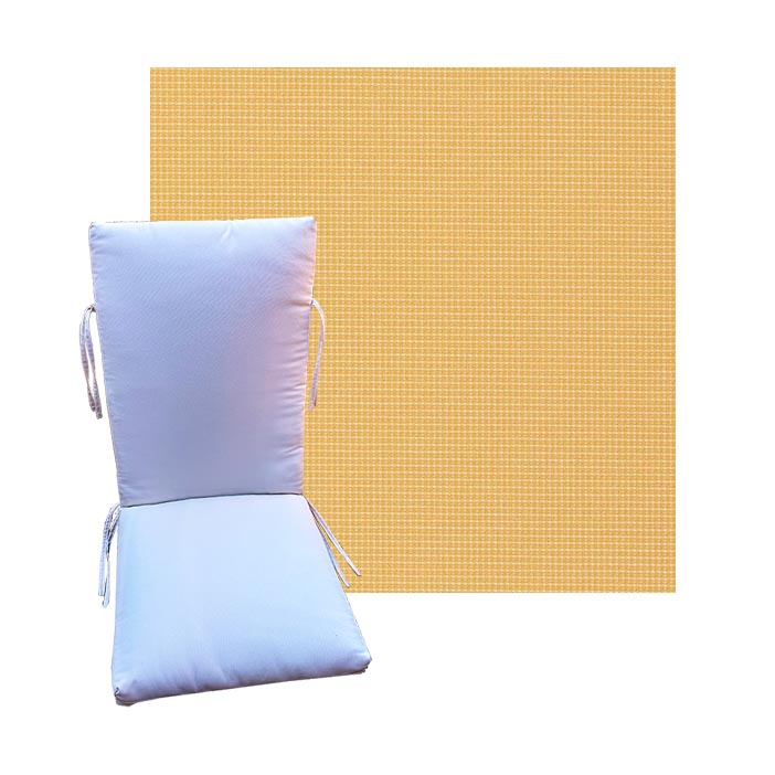 Order universal patio chair cushions in Outdura Outdoor Fabrics - Find a new colorful replacement cushion in 9 sizes - This style of patio chair cushion features a center seam, hinged design with fabric ties. These outdoor cushions are custom made to order in the fabric and size you need. See details on available sizes in the overview section below. BUY MORE and save.