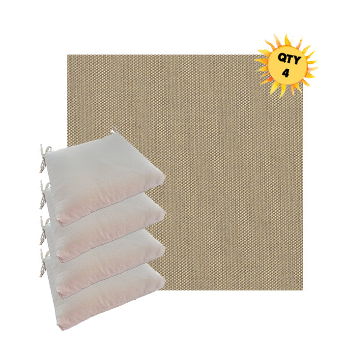 Each cushion is available in 4 universal sizes so you can choose the best fit for your existing outdoor dining furniture. A generous set of fabric ties keeps the cushion securely in place, even when people shift and move during meals. The interior features a combination of outdoor-rated foam and plush polyester fiber, creating a seat that feels soft yet supportive and holds its shape over time.