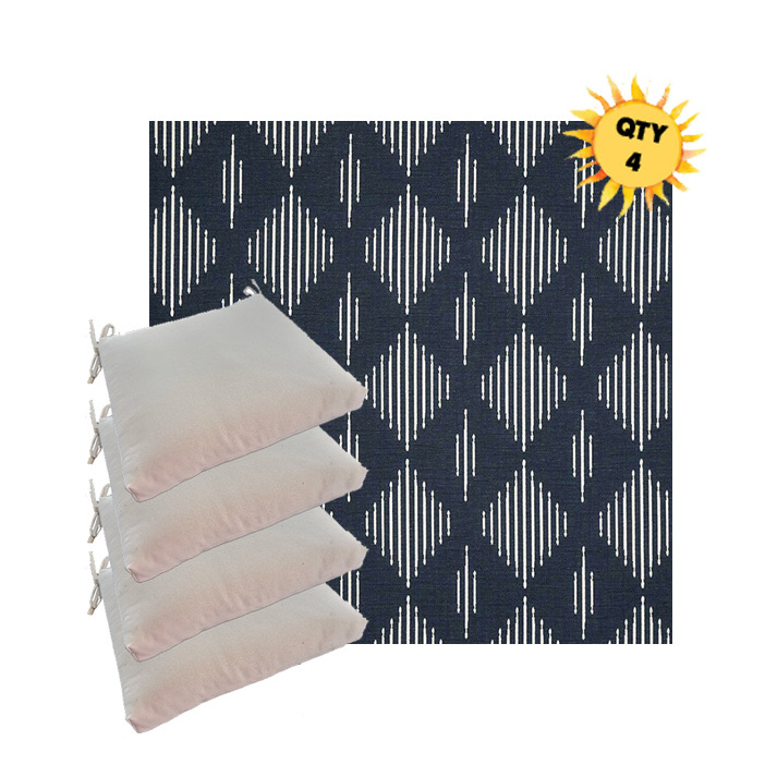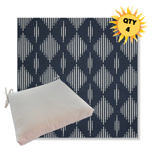 Sunbrella® Luxury Seat Cushions — Bundle of 4 (Custom Made) Upgrade your outdoor dining space with a coordinated set of four luxury Sunbrella® seat cushions, crafted in our most upscale Sunbrella fabric selections. These are made for patios that don’t do “average”—the kind of outdoor setting where every detail feels intentional, elevated, and unmistakably well-designed. Each bundle is custom made to order for a tailored look and feel, with premium construction designed for long-lasting comfort and performance. Choose from four versatile sizes to fit most outdoor dining chair styles, then select a higher-end Sunbrella® fabric that instantly sets your space apart from the run-of-the-mill cushion look.