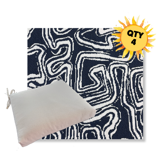 Each cushion is available in 4 universal sizes so you can choose the best fit for your existing outdoor dining furniture. A generous set of fabric ties keeps the cushion securely in place, even when people shift and move during meals. The interior features a combination of outdoor-rated foam and plush polyester fiber, creating a seat that feels soft yet supportive and holds its shape over time.