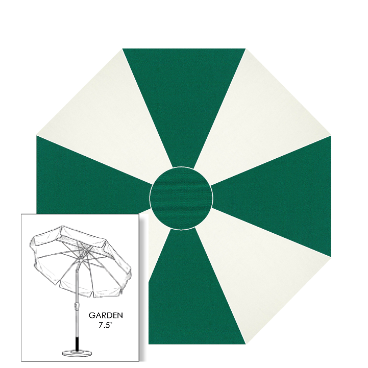 Sunbrella® Canvas Forrest Green & White – 7.5 ft Patio Umbrella (Garden Style)