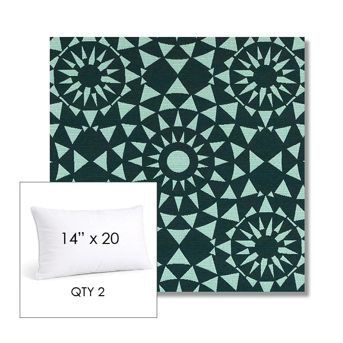 Custom 14" x 20" Lumbar Pillows - SET OF 2 square outdoor pillows available in over 700 Sunbrella® fabrics. Choose piping or knife-edge finish with optional covered button detail. Each pillow includes a zipper opening and premium outdoor insert for comfort, durability, and long-lasting outdoor performance.