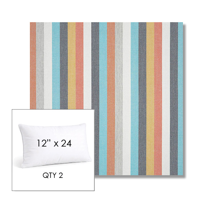 Custom 12" x 24" Lumbar Pillow SET OF TWO, square outdoor pillows available in over 700 Sunbrella® fabrics. Choose piping or knife-edge finish with optional covered button detail. Each pillow includes a zipper opening and premium outdoor insert for comfort, durability, and long-lasting outdoor performance.