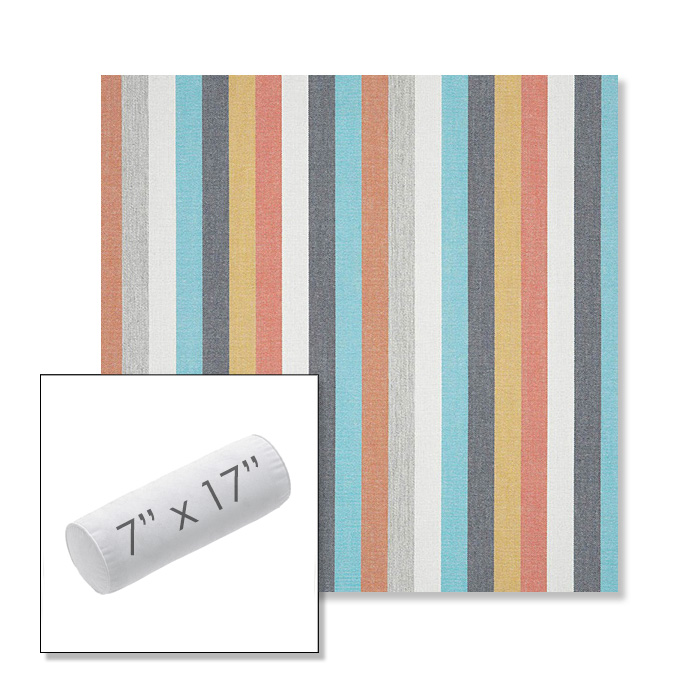 Custom 7" x 17" Outdoor Bolster Pillow Sunbrella® Fabric. Available in over 700 Sunbrella® fabrics. Comes standard with piping. Each pillow includes a zipper opening and premium outdoor insert for comfort, durability, and long-lasting outdoor performance.