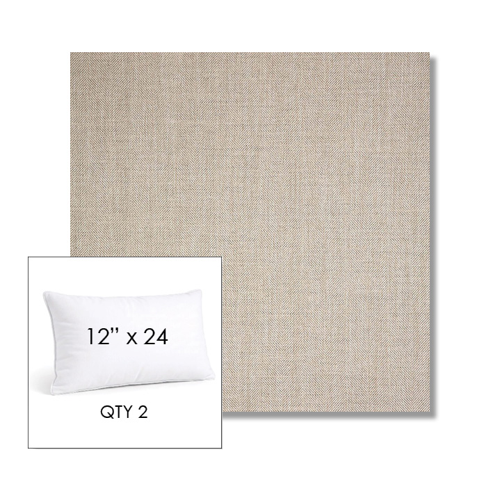 Custom 12" x 24" Lumbar Pillow SET OF TWO, square outdoor pillows available in over 700 Sunbrella® fabrics. Choose piping or knife-edge finish with optional covered button detail. Each pillow includes a zipper opening and premium outdoor insert for comfort, durability, and long-lasting outdoor performance.