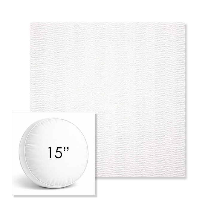 Custom 15" Round Boxed Sunbrella® Outdoor Pillow (3" Thick) available in over 700 Sunbrella® fabrics. Comes standard with piping. Optional covered button detail. Each pillow includes a zipper opening and premium outdoor insert for comfort, durability, and long-lasting outdoor performance.