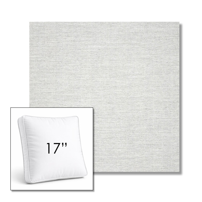 Custom 17" Square Boxed Sunbrella® Outdoor Pillow (3" Thick) available in over 700 Sunbrella® fabrics. Comes standard with piping. Optional covered button detail. Each pillow includes a zipper opening and premium outdoor insert for comfort, durability, and long-lasting outdoor performance.
