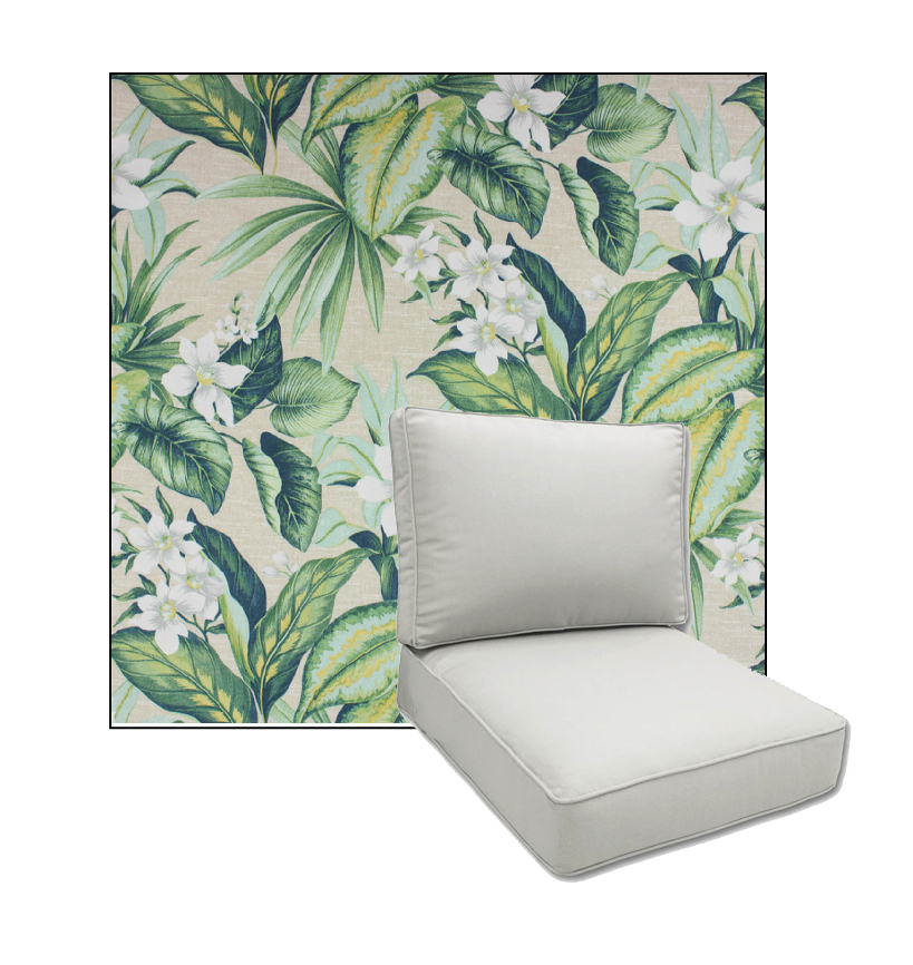 Our Easy order deep seating replacement cushion come in 4 common sizes and in beautiful outfoor printed polyester fabrics from Richloom Solarium..