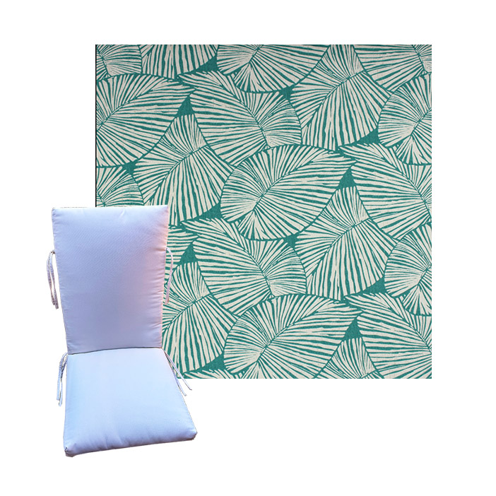 Order universal patio chair cushions in Richloom Solarium Outdoor Fabrics - Find a new colorful replacement cushion in 9 sizes - This style of patio chair cushion features a center seam, hinged design with fabric ties. These outdoor cushions are custom made to order in the fabric and size you need.