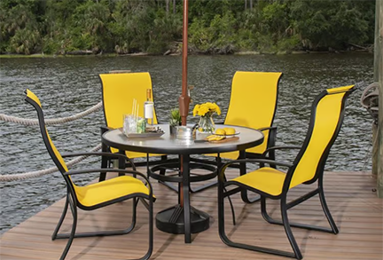 Unlike cushions, sling seating: Drains water instantly Requires no foam
