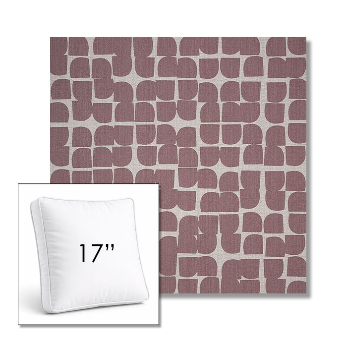 Custom 17" Square Boxed Sunbrella® Outdoor Pillow (3" Thick) available in over 700 Sunbrella® fabrics. Comes standard with piping. Optional covered button detail. Each pillow includes a zipper opening and premium outdoor insert for comfort, durability, and long-lasting outdoor performance.