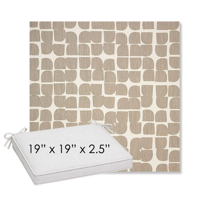 19" x 19" x 2.5" Thick outdoor dining chair seat cushion designed for a simple, ready-to-order fit. Features a boxed construction with piping, fabric ties, and zipper opening. Made in 700+ Sunbrella® fabrics for long-lasting outdoor performance.