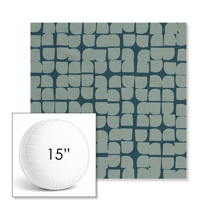 Custom 15" Round Boxed Sunbrella® Outdoor Pillow (3" Thick) available in over 700 Sunbrella® fabrics. Comes standard with piping. Optional covered button detail. Each pillow includes a zipper opening and premium outdoor insert for comfort, durability, and long-lasting outdoor performance.
