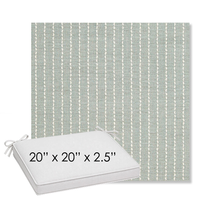 20" x 20" x 2.5" Thick outdoor dining chair seat cushion designed for a simple, ready-to-order fit. Features a boxed construction with piping, fabric ties, and zipper opening. Made in 700+ Sunbrella® fabrics for long-lasting outdoor performance.