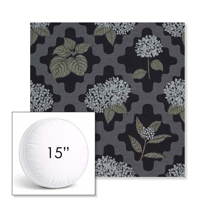 Custom 15" Round Boxed Sunbrella® Outdoor Pillow (3" Thick) available in over 700 Sunbrella® fabrics. Comes standard with piping. Optional covered button detail. Each pillow includes a zipper opening and premium outdoor insert for comfort, durability, and long-lasting outdoor performance.