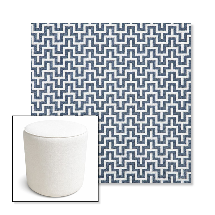 Underline Denim | 16" Round x 18" Tall Outdoor Pouf or Ottoman | Sunbrella Fabrics