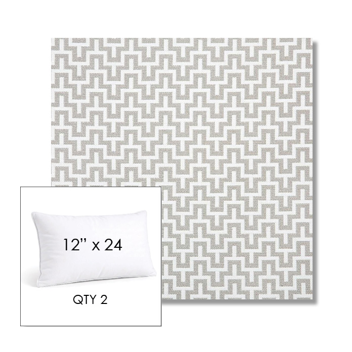 Custom 12" x 24" Lumbar Pillow SET OF TWO, square outdoor pillows available in over 700 Sunbrella® fabrics. Choose piping or knife-edge finish with optional covered button detail. Each pillow includes a zipper opening and premium outdoor insert for comfort, durability, and long-lasting outdoor performance.