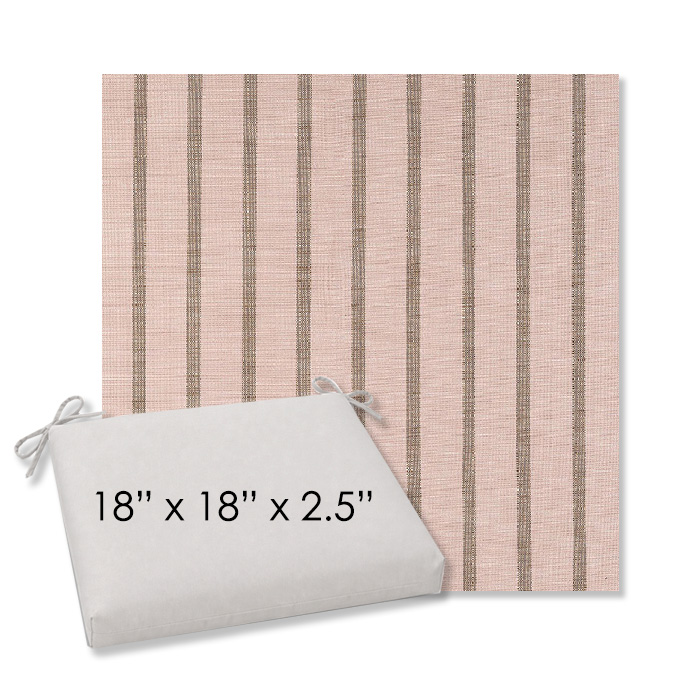 18" x 18" x 2.5" Thick - Universal outdoor dining chair seat cushion in Sunbrella Solution Dyed Polyester Outdoor Fabrics. Features with generous fabric ties and outdoor foam with polyester fiber fill—perfect for most patio dining chairs. Each Outdoor Patio Dining Chair Cushion is a center seam design and 2.5" Thick. All patio dining chair cushions are custom made to order in the size and fabric of your choice.