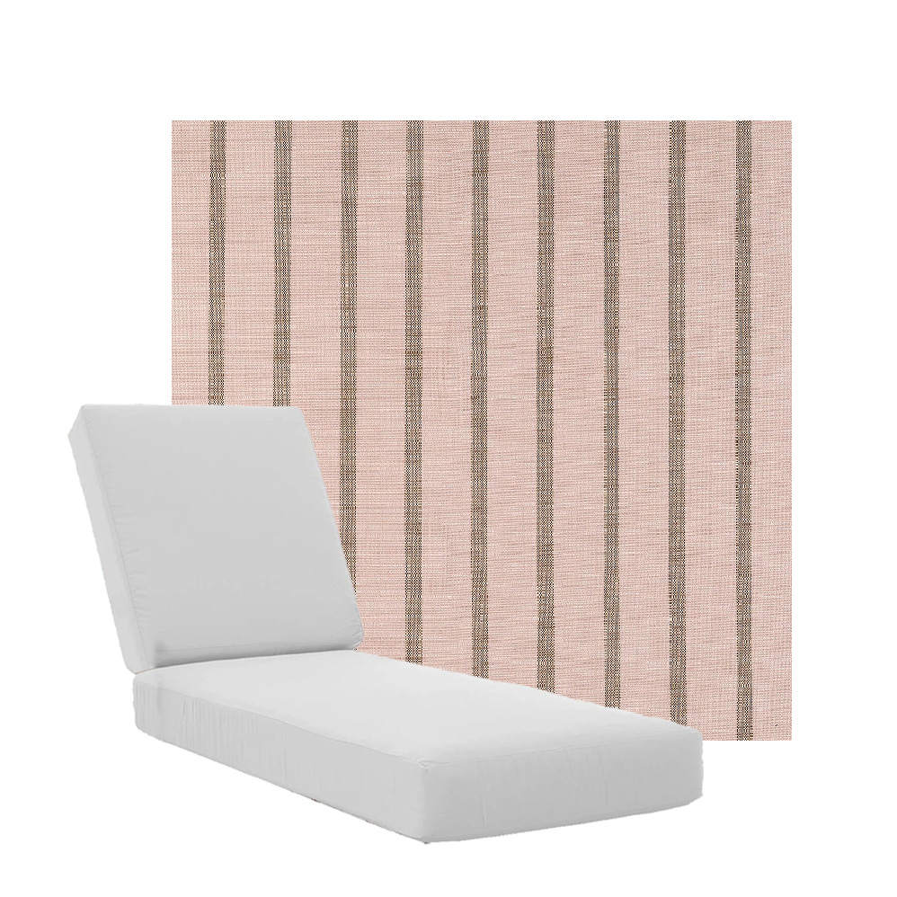 Boxed Chaise Lounge Cushions in Sunbrella Fabrics. Separate Seat and Back Cushions. Available in 3 sizes to fit a variety of outdoor furniture styles. Our boxed Chaise Lounge Cushions feature foam and fiber, piping and zipper openings. All chaise lounge replacement cushions are custom made to order in your choice of fabric and size. Made in the USA. Lead times may vary depending on the time of year.