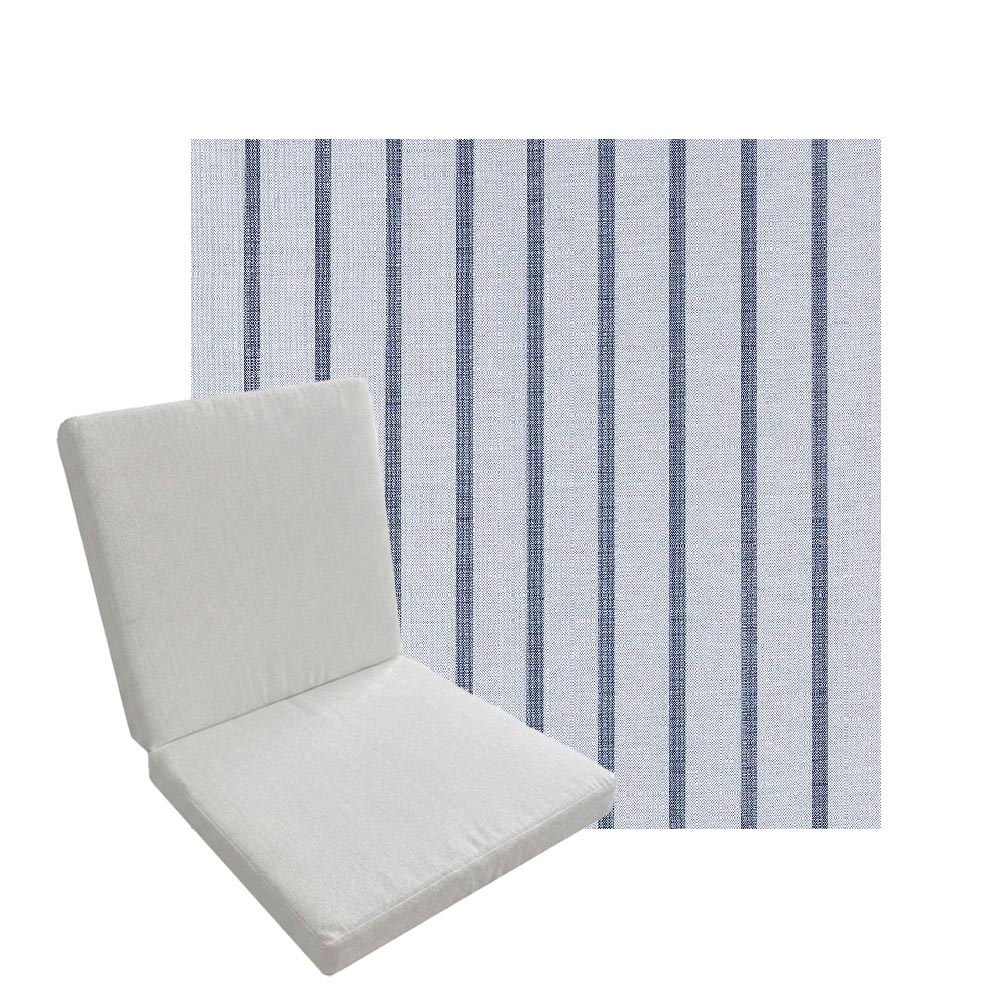 Looking for a simple an economical pad for your patio chairs? Our Add A Pad is a great option for a bit of additional comfort and style and an economical price. Available in 3 universal sizes to fit a variety of patio chairs. Great for a sling chairs or a chairs with vinyl strapping. Each pad is 2" thick and uses standard outdoor foam. Simple knife edge design. No piping. No Zippers. -Fabric ties are included at the hinge area only.