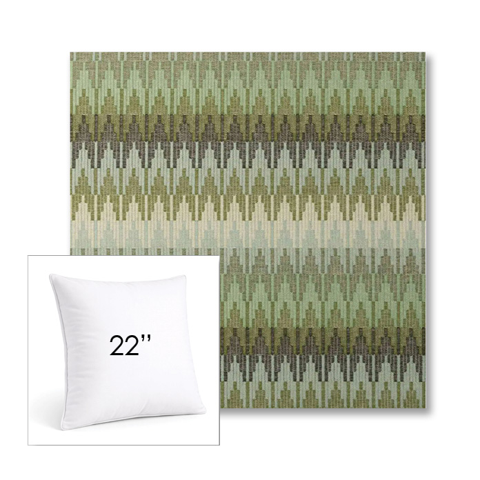 Custom 22" square outdoor pillows available in over 700 Sunbrella® fabrics. Choose piping or knife-edge finish with optional covered button detail. Each pillow includes a zipper opening and premium outdoor insert for comfort, durability, and long-lasting outdoor performance.