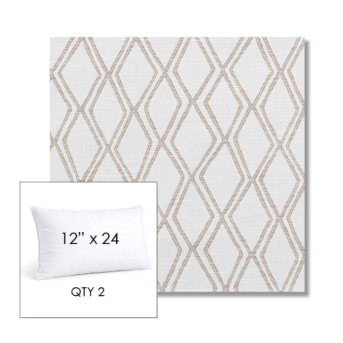 Custom 12" x 24" Lumbar Pillow SET OF TWO, square outdoor pillows available in over 700 Sunbrella® fabrics. Choose piping or knife-edge finish with optional covered button detail. Each pillow includes a zipper opening and premium outdoor insert for comfort, durability, and long-lasting outdoor performance.