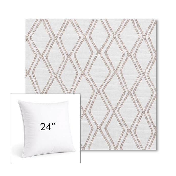 Custom 24" square outdoor pillows available in over 700 Sunbrella® fabrics. Choose piping or knife-edge finish with optional covered button detail. Each pillow includes a zipper opening and premium outdoor insert for comfort, durability, and long-lasting outdoor performance.