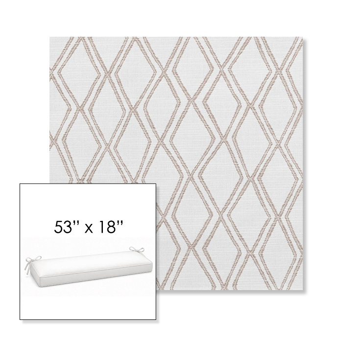 Upgrade your outdoor seating with our 53" wide x 18" deep x 3" thick outdoor bench cushion, designed for a clean, tailored fit and effortless ordering. Built in a structured boxed style with piping and fabric ties, this cushion delivers both comfort and durability for everyday outdoor living. Whether you're replacing an existing cushion or refreshing your space, this size is ideal for patio benches, porch seating, window seats, and built-in outdoor furniture.