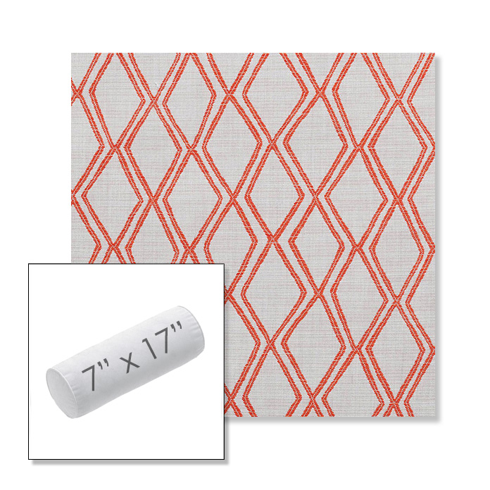 Custom 7" x 17" Outdoor Bolster Pillow Sunbrella® Fabric. Available in over 700 Sunbrella® fabrics. Comes standard with piping. Each pillow includes a zipper opening and premium outdoor insert for comfort, durability, and long-lasting outdoor performance.