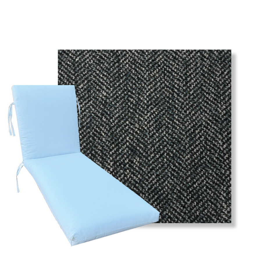 Classic Style Chaise Lounge Cushion. Premium Universal Chaise Lounge Replacement Cushions in 3 common sizes. Simple center seam design. No piping. Designed to accommodate aluminum, wood, and PVC furniture. Includes fabric ties at back and hinge. Polyester/densified fiber fill.