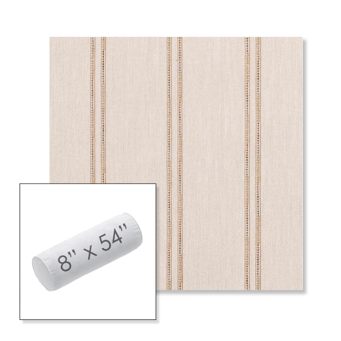 Custom 8" x 54" Outdoor Bolster Pillow Sunbrella® Fabric. Available in over 700 Sunbrella® fabrics. Comes standard with piping. Each pillow includes a zipper opening and premium outdoor insert for comfort, durability, and long-lasting outdoor performance.