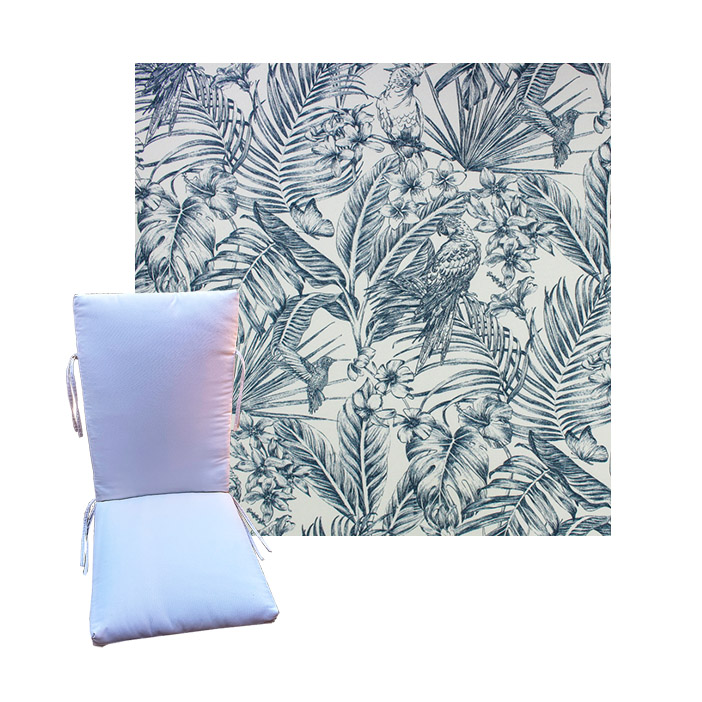 Order universal patio chair cushions in Richloom Solarium Outdoor Fabrics - Find a new colorful replacement cushion in 9 sizes - This style of patio chair cushion features a center seam, hinged design with fabric ties. These outdoor cushions are custom made to order in the fabric and size you need.