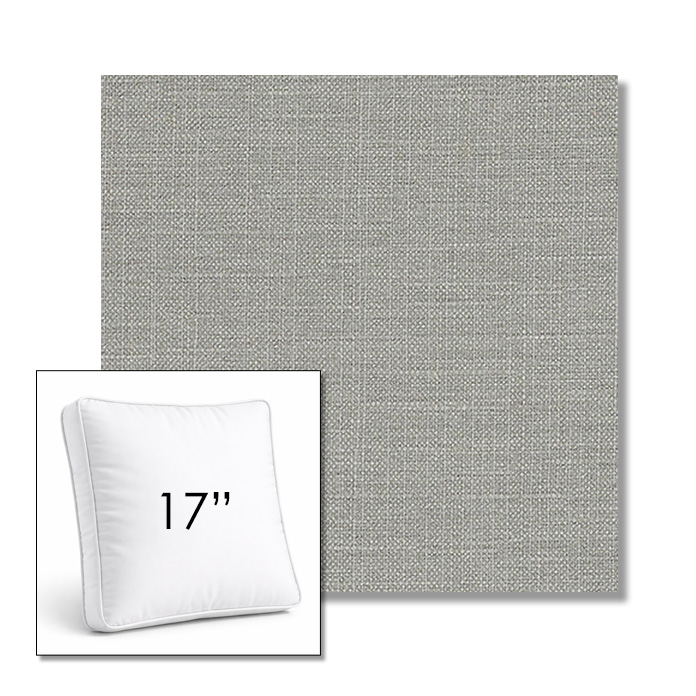Custom 17" Square Boxed Sunbrella® Outdoor Pillow (3" Thick) available in over 700 Sunbrella® fabrics. Comes standard with piping. Optional covered button detail. Each pillow includes a zipper opening and premium outdoor insert for comfort, durability, and long-lasting outdoor performance.