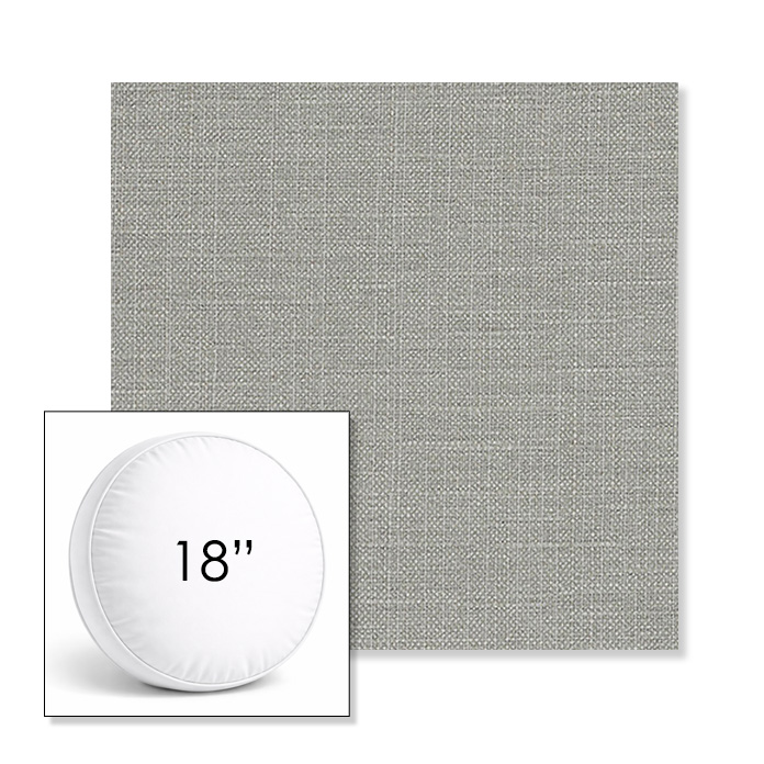 Custom 18" Round Boxed Sunbrella® Outdoor Pillow (3" Thick) available in over 700 Sunbrella® fabrics. Comes standard with piping. Optional covered button detail. Each pillow includes a zipper opening and premium outdoor insert for comfort, durability, and long-lasting outdoor performance.