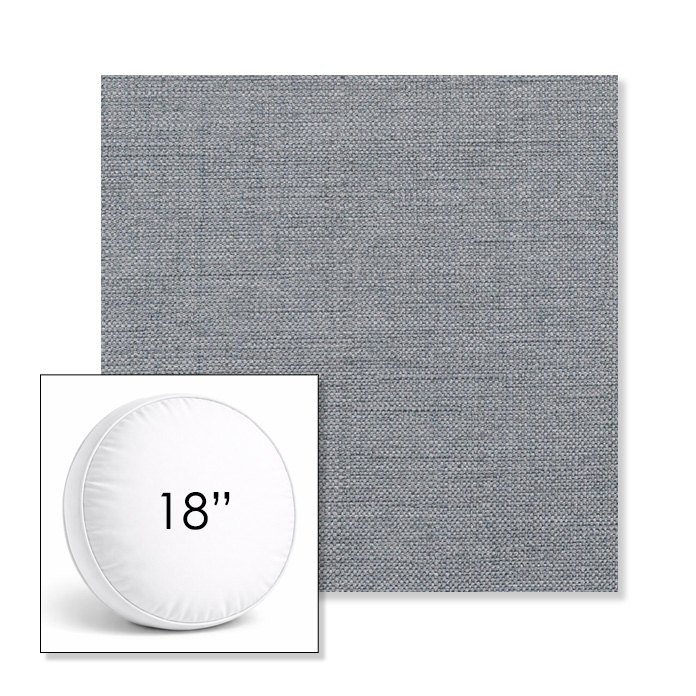 Custom 18" Round Boxed Sunbrella® Outdoor Pillow (3" Thick) available in over 700 Sunbrella® fabrics. Comes standard with piping. Optional covered button detail. Each pillow includes a zipper opening and premium outdoor insert for comfort, durability, and long-lasting outdoor performance.