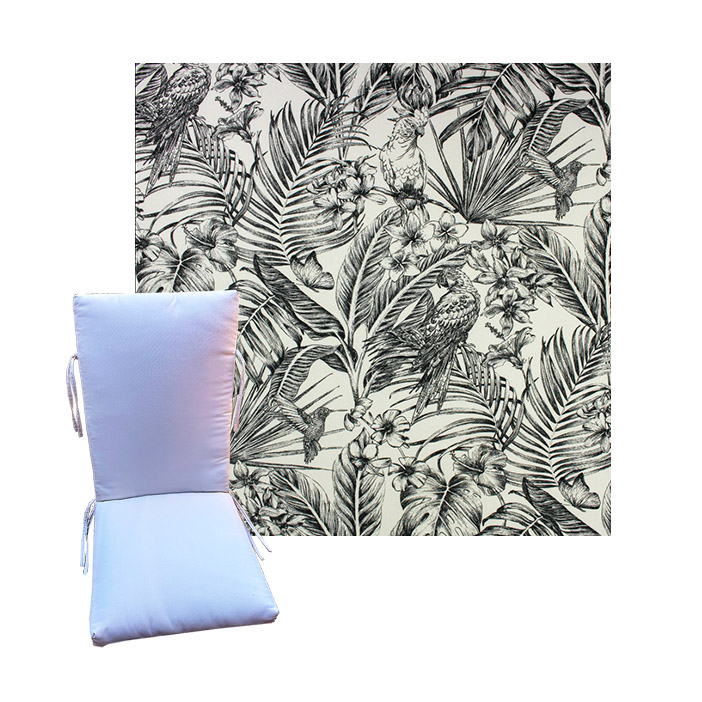 Order universal patio chair cushions in Richloom Solarium Outdoor Fabrics - Find a new colorful replacement cushion in 9 sizes - This style of patio chair cushion features a center seam, hinged design with fabric ties. These outdoor cushions are custom made to order in the fabric and size you need.