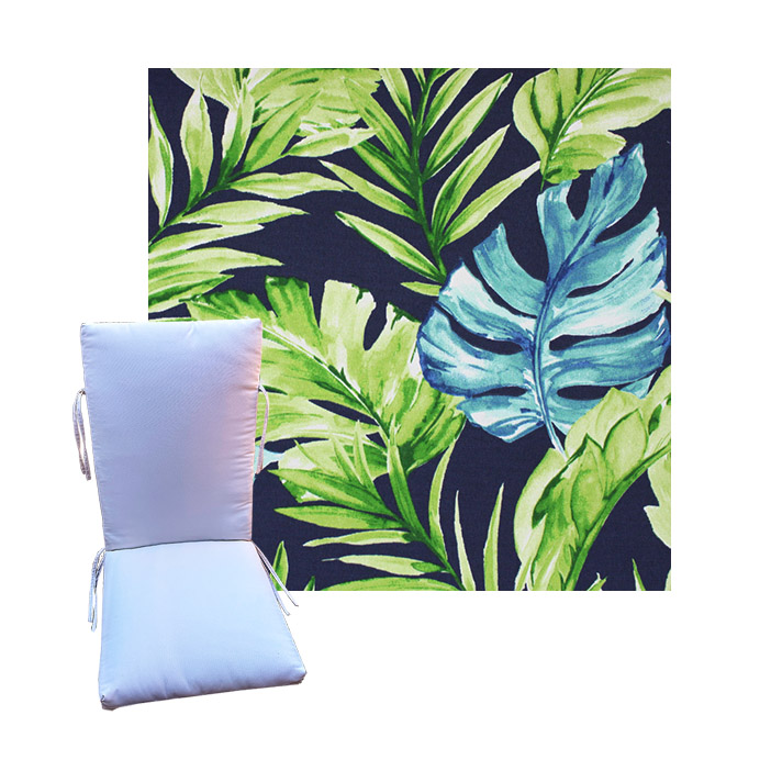 Order universal patio chair cushions in Richloom Solarium Outdoor Fabrics - Find a new colorful replacement cushion in 9 sizes - This style of patio chair cushion features a center seam, hinged design with fabric ties. These outdoor cushions are custom made to order in the fabric and size you need.