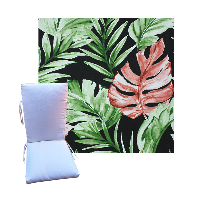 Order universal patio chair cushions in Richloom Solarium Outdoor Fabrics - Find a new colorful replacement cushion in 9 sizes - This style of patio chair cushion features a center seam, hinged design with fabric ties. These outdoor cushions are custom made to order in the fabric and size you need.